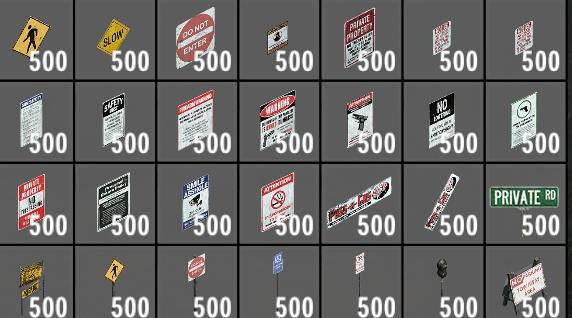 Also die Schilder befinden sich, im Bereich Requisiten Außenbereich, (Entwicklungsblöcke an) dort auf Seite 11, sry das ich erst jetzt antworte... Das ist mir durchgegangen .. Mea Culpa , mea maxima Culpa :schild125: