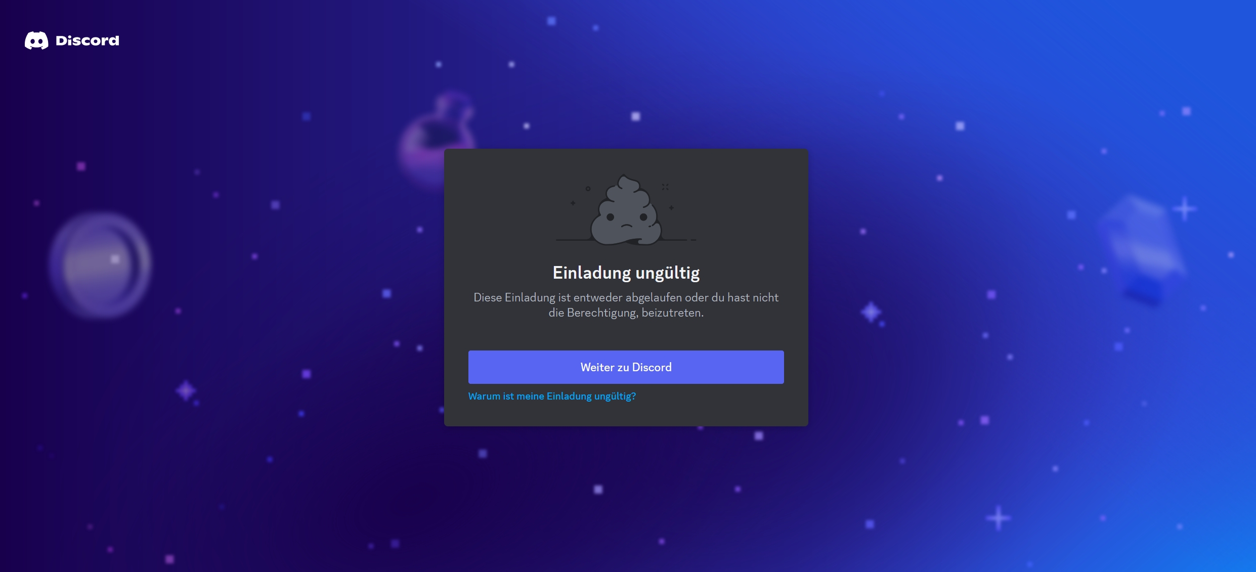 wenn ich mit meinem aktuellen Gaming-Laptop (Win11, up to date) über den Einladungslink hier in den Discord will, sagt Discord mir: "Du kommst hier net rein" - Einladung ungültig, warum auch immer...