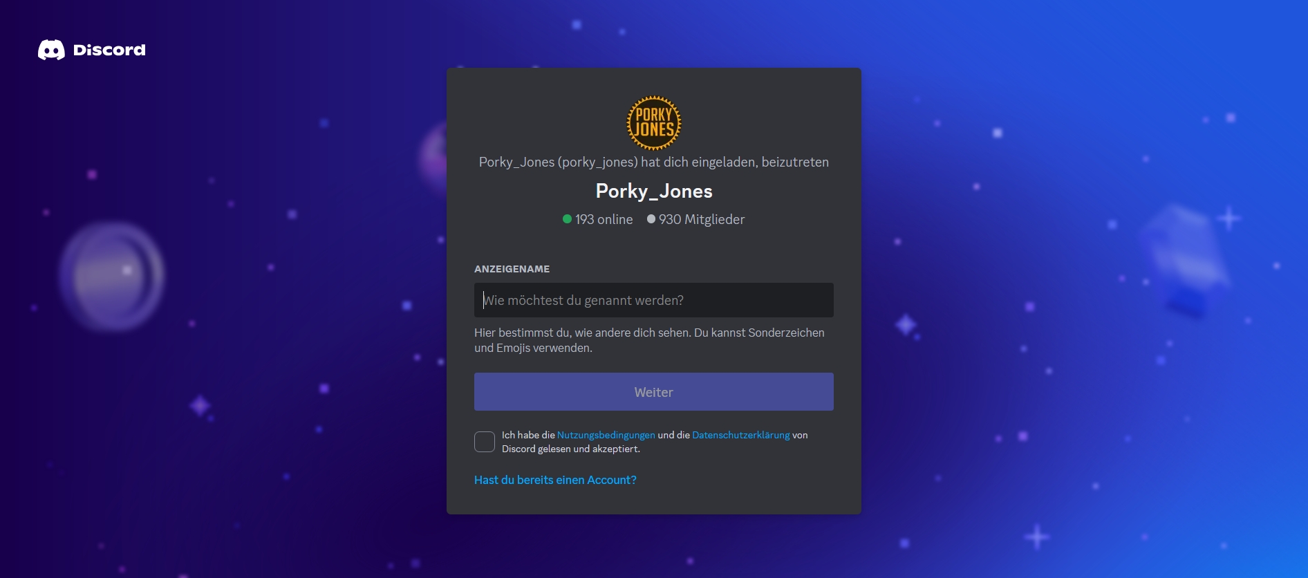 Ich könnte also damit, müsste mir demnach einen neuen Account anlegen. Ich war mit diesem Rechner allerdings schon mal in Porky's Discord, ist aber schon etwas länger her. Wenn ich die alten Zugangsdaten eingebe bin ich dennoch ein Unbekannter - hmmm.