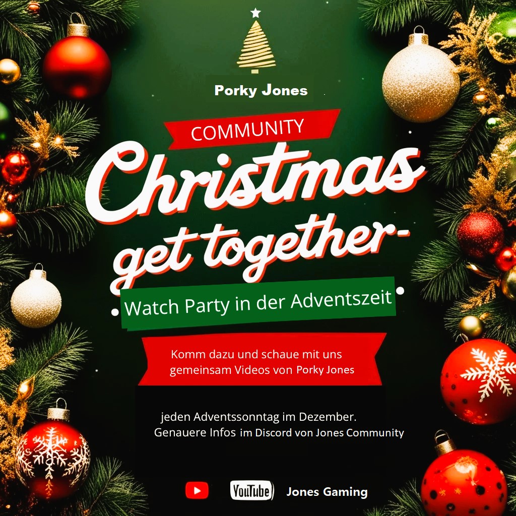Das nächste Watch together findet am 15.12.2024 um 17 Uhr im Discord von Porky Jones statt https://discord.gg/PXBr7U3J?event=1315685283013988433